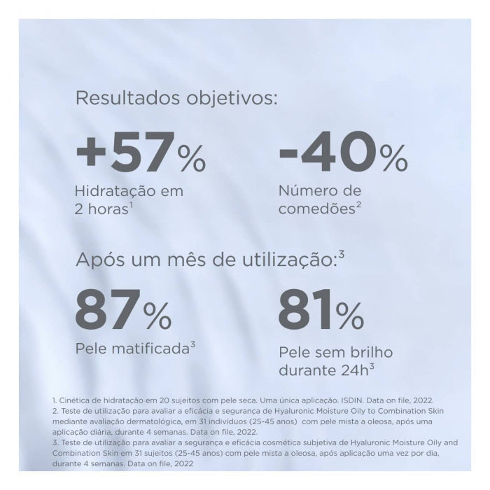 ISDIN Isdinceutics Hyaluronic Moisture Pele Oleosa proporciona uma pele mais equilibrada, macia e jovem.
